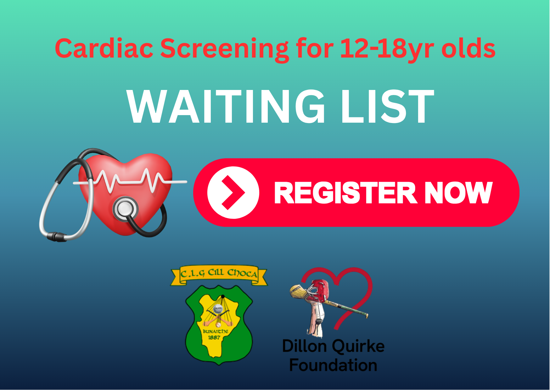 However, we are really keen to raise awareness of SADS, facilitate the work of the Dylan Quirke Foundation and so try to offer this screening to as many members as possible. We are opening a waiting list for any cancellation that may arise for the 11th August AND to gauge interest so we can approach the provider to secure an additional screening date. Please complete the form to register interest in your child aged 12-18 being screened.